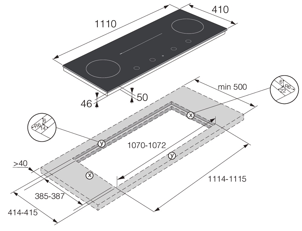 - Обработка края: Прямой край для установки вровень со столешницей.