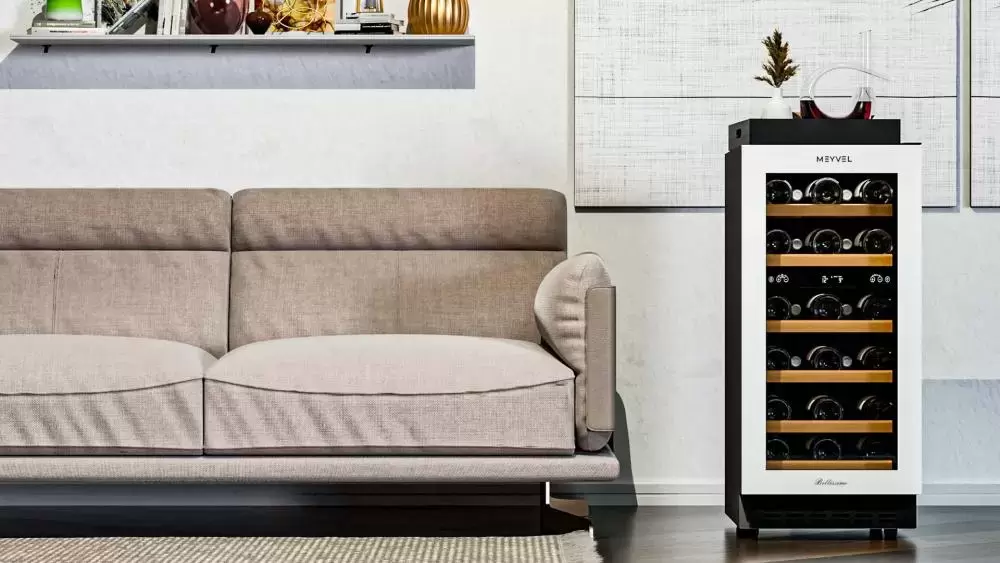 Винный холодильник Meyvel MV28NH-KWT2 имеет две температурные зоны, в которых одновременно можно хранить разные сорта алкоголя и выставлять разные сочетания настроек. Он встраивается в нишу, что удобно, если у вас ограничен метраж помещения. Благодаря компактным размерам данная модель — отличный выбор для офиса, гостиничного номера. Количество бутылок, которое можно разместить с учетом полной комплектации и из расчета объема бутылки 0,75 л, — 28 шт.